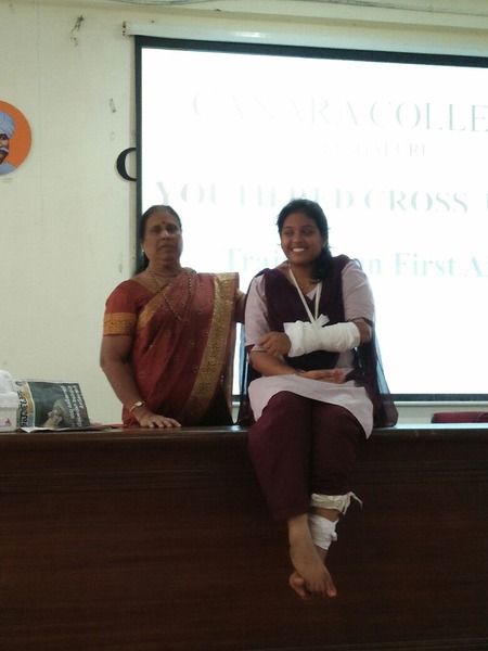 The Youth Red Cross Unit of Canara College, Mangalore organized a programme on First Aid Training on August 16,2017 at college seminar hall . Mrs. Meena Malani, a well known first aid instructor of Mangalore, was the Resource person for the programme.
