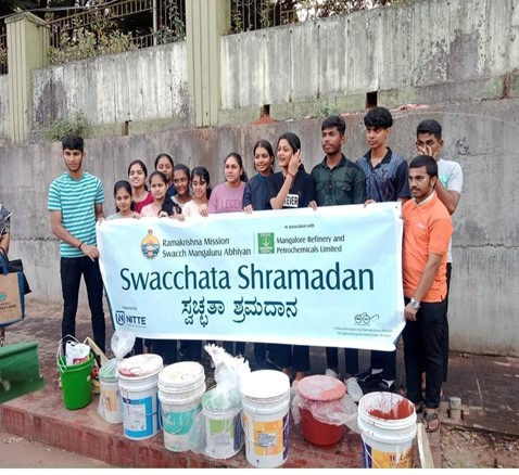 The program was carried out under the guidance of Sri Jitakananandaji, President of Mangaluru Ramakrishna Mutt, and supported by Student Welfare Mentors Mrs. Babitha S., Mrs. Smitha M., and Mr. Ranjan Bellarpady, Swachh Mangaluru Abhiyan Coordinator, ensuring effective leadership and coordination throughout the initiative