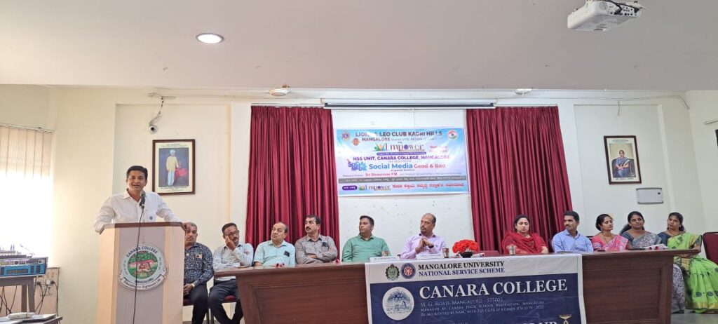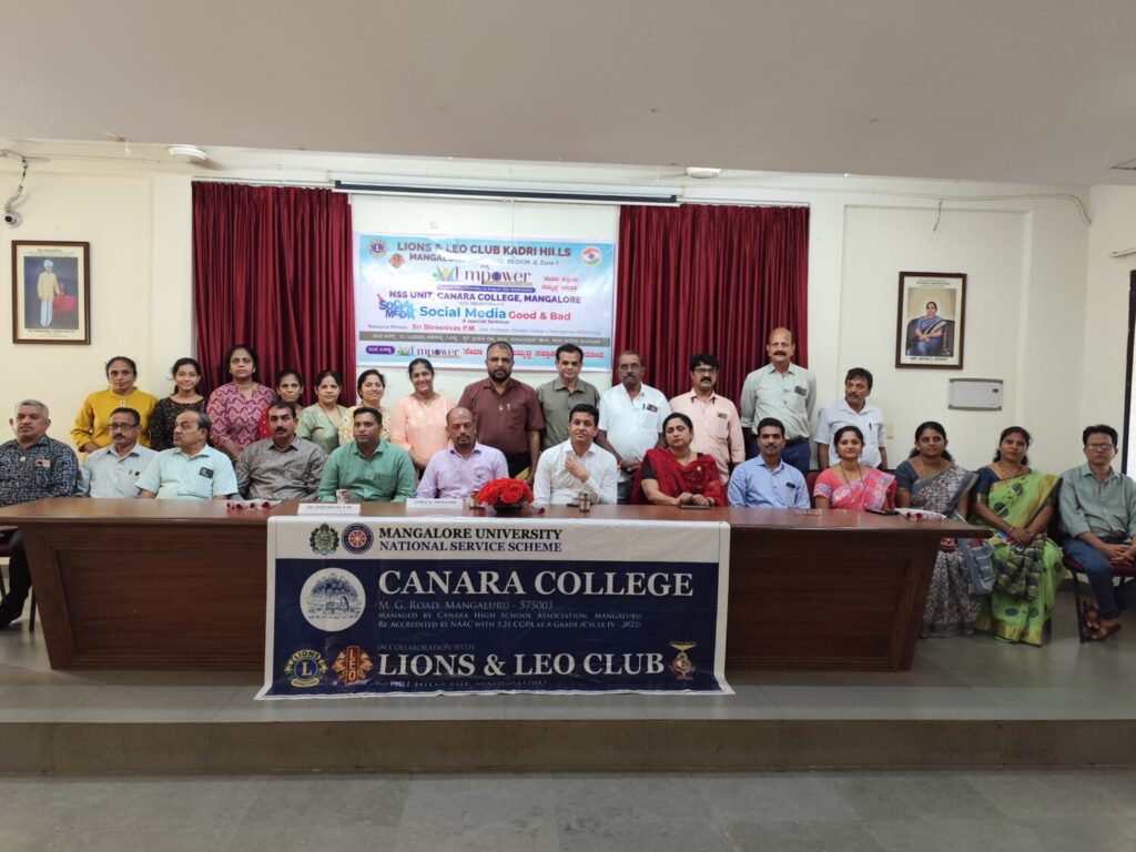 The NSS Units of Canara College, in collaboration with Lions and Leo Club, Kadri Hills, Mangalore, organized an awareness lecture on the topic “Social Media – Good & Bad” on August 21, 2024, in the College Seminar Hall. The resource person for the session was Sri Shreenivas P. M., Assistant Professor, Sahyadri College of Management and Technology, Mangalore.