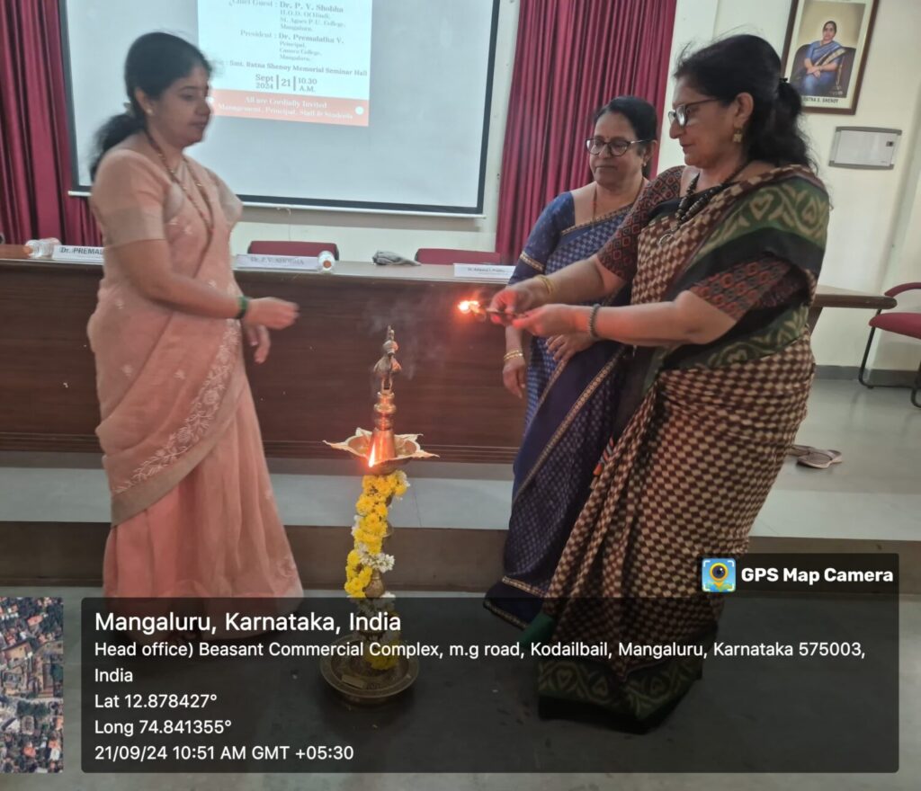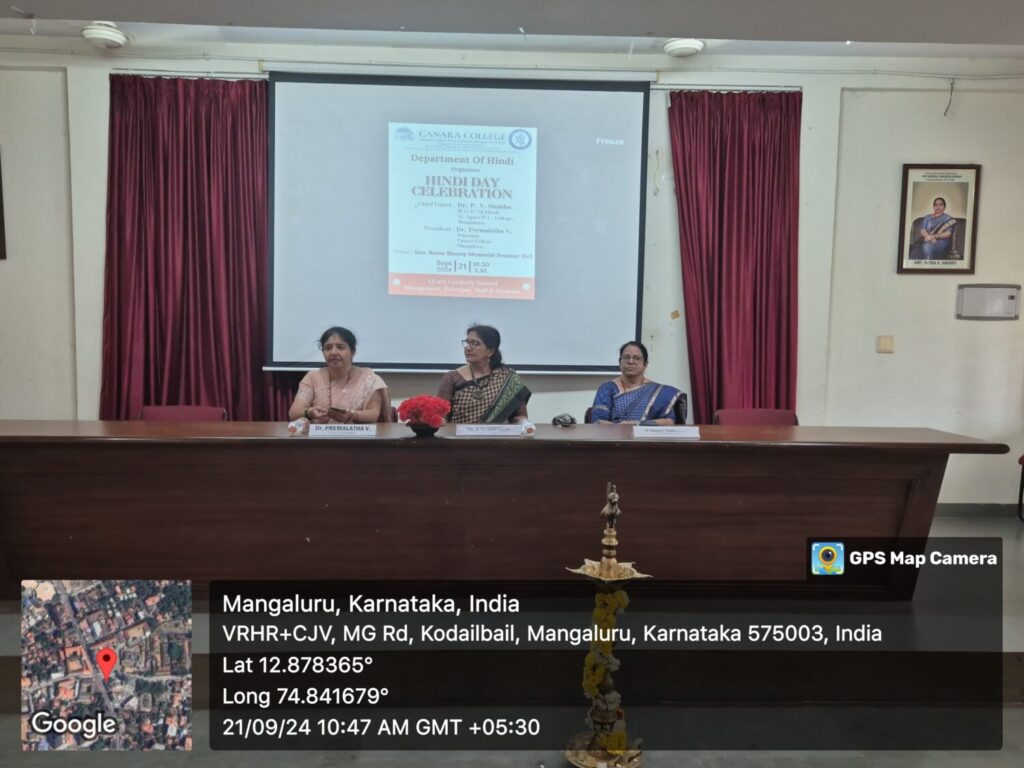 Department of Hindi celebrated Hindi Day on September 21,2024 in the Seminar Hall. Dr. P.V. Shobha, the Head of the Hindi Department of St. Agnes Pre-University College, the chief guest inaugurated the event by lighting the lamp and spoke about the importance of the Hindi language and literature, emphasizing the need to learn the language without grammatical errors. She mentioned that even a country like Russia follows the three-language formula.