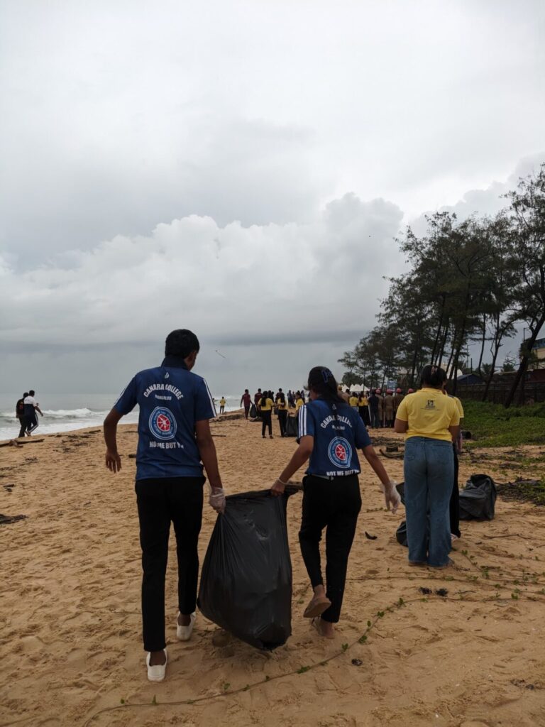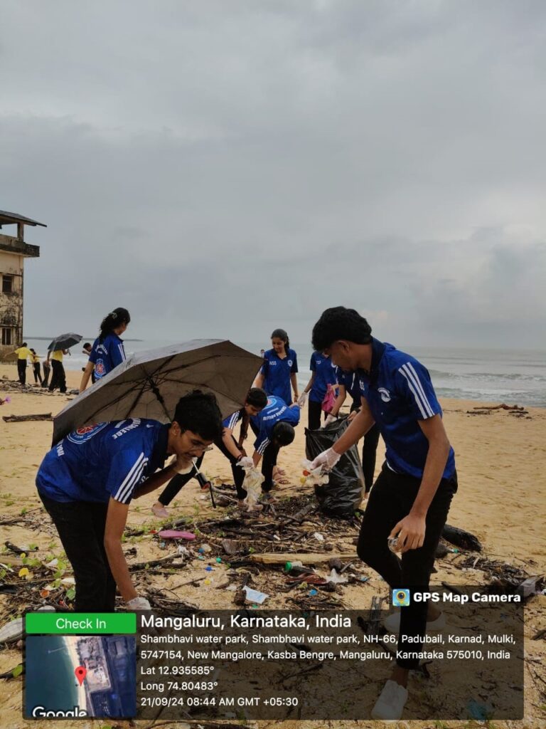 On the occasion of International Coastal Cleanup (ICC) Day and in alignment with the governmental initiative “Swachhata Hi Seva”, 85 NSS volunteers of Canara College, on September 21, 2024, at 7:15 A.M. enthusiastically participated in the “International Coastal Cleanup Day 2024” at Panambur Beach and also in the Kite-flying competition organized by Indian Coast Guard, Panambur, Mangaluru. The primary objectives were to raise awareness about the sensitivity of ocean and coastal pollution, and promote sustainable practices.