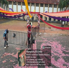 It is the moral duty of each individual to keep themselves, their homes, their school, their workplace and their surroundings clean. Cleanliness gives rise to a good character by keeping body, mind, and soul clean and peaceful. The NSS Units of Canara College organized a Cleanup Drive Post Dandiya Night on September 03, 2024 to educate and promote civic sense among the students.