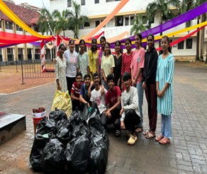 Despite the previous evening’s festivities, the dedicated NSS volunteers arrived early in the morning and got to work with great enthusiasm and commitment. They collected all discarded waste, removed the decorations, and meticulously cleaned the area. Over the course of half a day, the team ensured that the quadrangle and the entire college campus were returned to its original, spotless condition. Through this cleanup drive they realized the importance of maintaining cleanliness and hygiene. A group of 15 NSS volunteers undertook the cleaning activity under the guidance of the NSS Programme Officer Mrs. Sushama C.