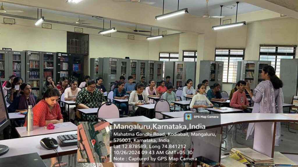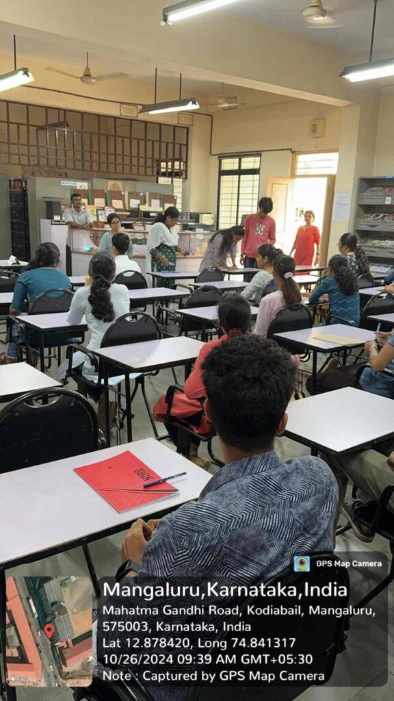 In the Library reading room, on October 26, 2024 from 9.30 A.M to 10.30 A.M., the Library and Information Centre organised the ‘Library Orientation’ programme for freshers of Post Graduation.