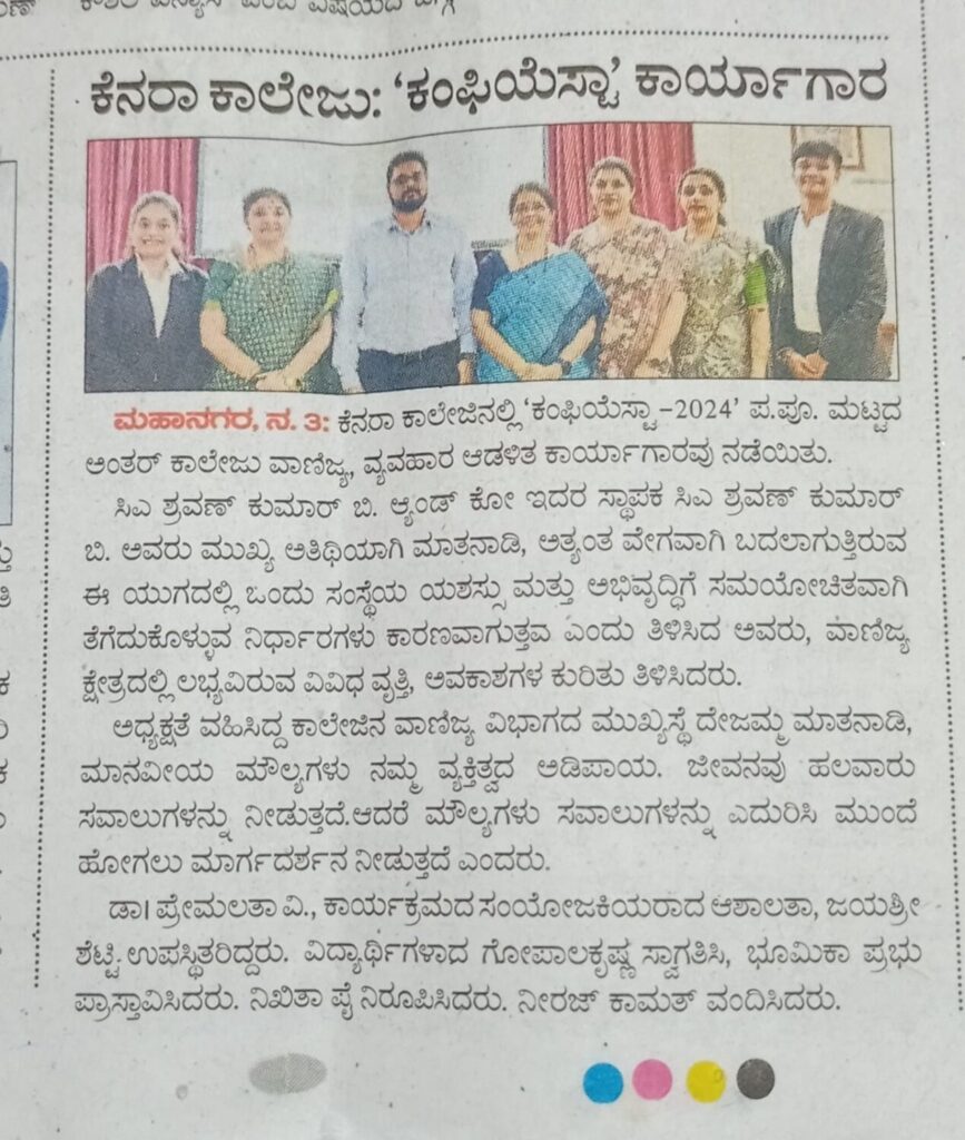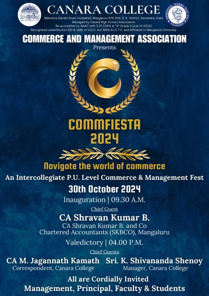 Commerce and Management Association organized an “Inter-Collegiate PU Level Commerce and Management Fest – COMMFIESTA 2024”on October 30, 2024. The inauguration of the program began with the rendition of prayer by Mr. Agama