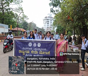 On November 26, 2024 at War Memorial Monument, Kadri, Mangaluru, NSS Units of Canara College in association with NSS Mangaluru University celebrated Constitution Day (also known as “Samvidhan Divas”). Rastriyavadi Kraistara Vedike organized ‘Asuvu Rashtra Samarpita’ to celebrate Indian Constitution Day and also to pay homage to the martyrs of the dastardly 2008 Mumbai terror attack.