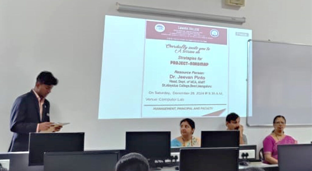 The Centre for Post Graduate Studies in Computer Applications (M.C.A.) organized a session on “Project-Roadmap” for the Second-year MCA students on December 28, 2024, at 9:30 A.M. in Computer Science Lab 4.