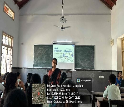 The Department of Commerce of Canara College organized a session on “Mini Project Mastery: A Step-by-Step Guide” for the final year students on February 27, 2025, by Prof. Sandhya, Associate Professor in Commerce, Govt. First Grade College, Uppinangadi. Madam Sandhya addressed the students on choosing a relevant and feasible topic that aligns with academic and industry requirements. She also suggested conducting a literature review of existing research to identify gaps and opportunities. The session provided valuable guidance on defining research methodology, including data collection, statistical tools for analysis and interpretation to final year students. A total of 159 students benefited from this guest talk. Academic Class Mentors, Mrs. Dejamma A., Mrs.Usha Nayak, Mrs. Ashalatha, and Mrs. Vinoda V. Nayak were present in this session.