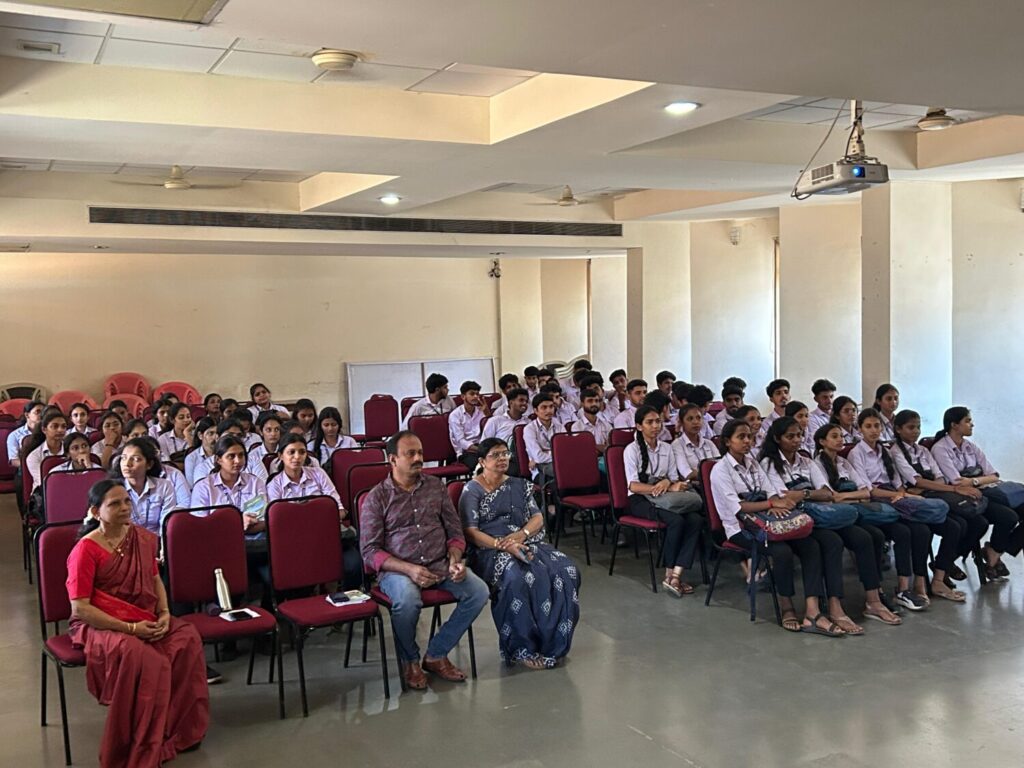 The event focused on ‘Snehagange’ – one of the lessons prescribed for BCA Fourth Semester students. The writer spoke at length about the origin of the idea for the storyline. He, with great enthusiasm, answered all the queries raised by the students related to the story. Ms. Sakshi introduced the guests and welcomed the attendees. Ms. Ashwini delivered the vote of thanks. Ms. Prachetha adeptly served as the Master of Ceremony. The program concluded successfully wherein 77 students benefitted. Mrs. Vani U S, Head, and Mrs. Shailaja P, Faculty, of Department of Kannada were present.