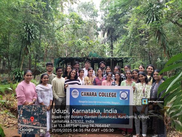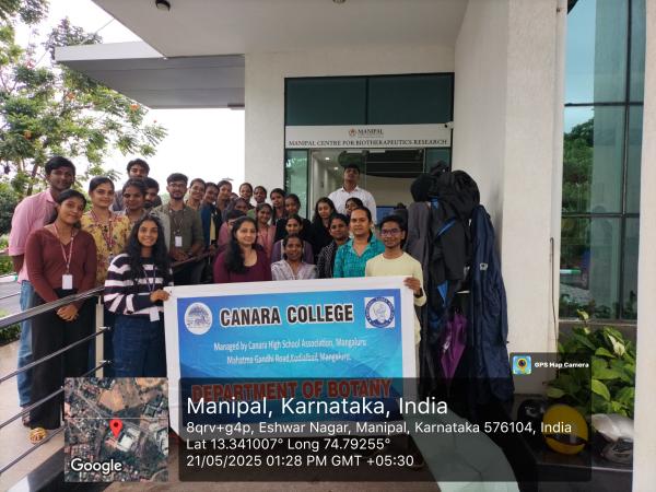 The Department of Botany and Zoology organized Biological study field visit to School of Life Sciences, MCBR, Manipal Anatomy and Pathology museum, TMA Pai planetarium, Manipal, Mahathma Gandhi Memorial Botanical garden and Zoological museum, Udupi on May 21, 2025. A group of 30 students was accompanied by two teaching faculty Mrs. Sushama. C, Head, Department of Zoology and Ms. Madhushree, Head, Department of Botany. The journey started at 9 A.M. from Canara College, Mangalore.