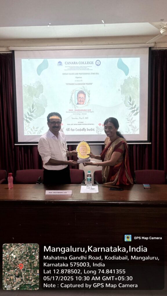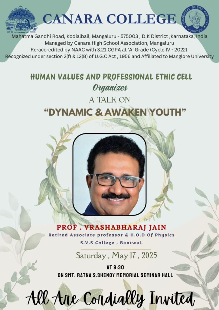 Human Values and Professional Ethic Cell organized a talk on “Dynamic and Awaken Youth” on May 17, 2025 in the seminar hall of the college under the guidance of Dr.Asha Kiran Pakkala, Convener, Human Values & Professional Ethic Cell.