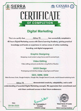 The Certificate Course in Digital Marketing offered by Sierra Learning Academy, Mangaluru, was developed to address the growing demand for skilled professionals in the rapidly evolving digital landscape. In today’s digital-first economy, businesses of all sizes are leveraging online platforms to market their products and services, making digital marketing an essential skill across industries.