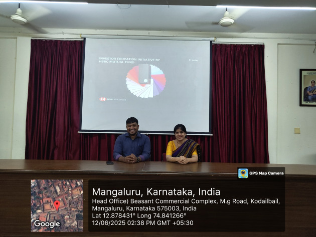 The programme featured Mr. Arjun Prakash, Assistant Professor at Aloysius Deemed to be University, as the resource person, who shared expert knowledge on mutual fund investments and their role in wealth creation. The event was coordinated by Mrs. Swathi Nayak, PG Coordinator, and witnessed active participation from 68 students, reflecting keen interest in understanding sustainable investment opportunities