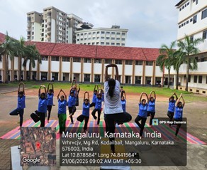 On June 21, 2025 the National Service Scheme Units of Canara College celebrated International Day of Yoga 2025 at 8:45 A.M. in the College quadrangle. Mrs. Usha Nayak, Certified Yoga Trainer, Assistant Professor, Canara College was the Resource Person for the day.