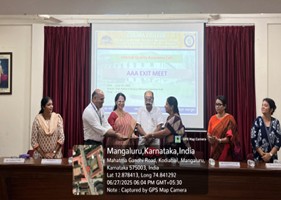 The Exit Meeting was convened at 5:00 P.M. in the College Seminar Hall. Dr. Devi Prabha Alva Associate Professor of Commerce, St Agnes College (Autonomous), Mangaluru in her address, emphasized that the suggestions made by the Peer Team should be embraced in a constructive spirit. With the upcoming NAAC re-accreditation cycle on the horizon, she urged the faculty to view this feedback as an opportunity to grow and excel further.
