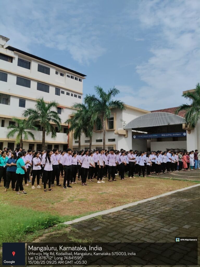 On the auspicious occasion, the Chief Guest spoke about the importance of tricolor flag and about patriotism. Correspondent of the college CA M. Jagannath Kamath, Principal Dr. Premalatha V., Principal in-charge Mrs. Dejamma A., Administrative Officer Dr. Deepti Nayak, and Principal of Canara Evening College Prof Mrs. Anila Kamath were present during the program.