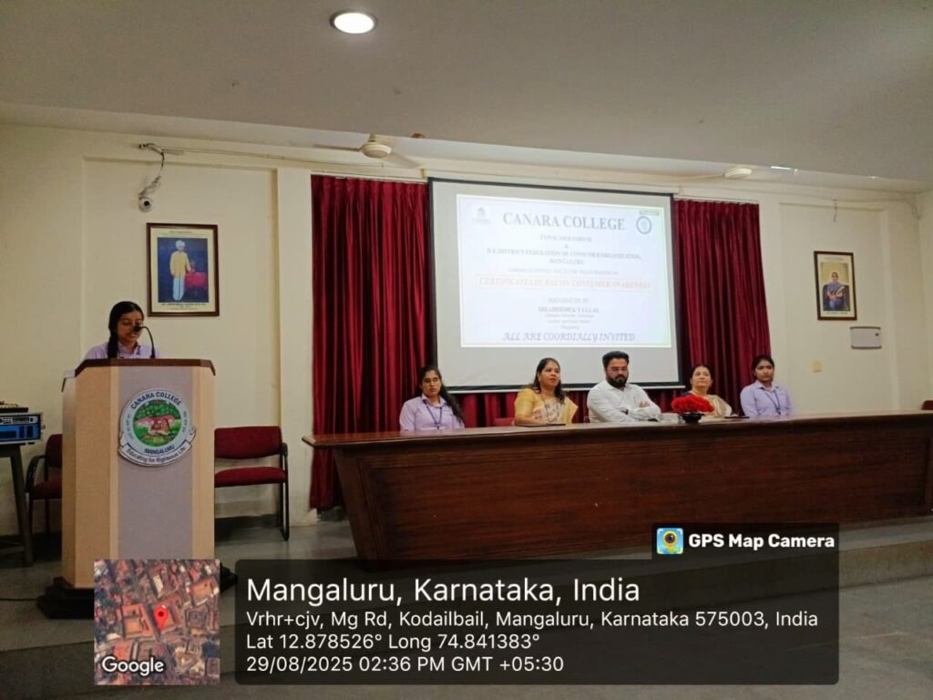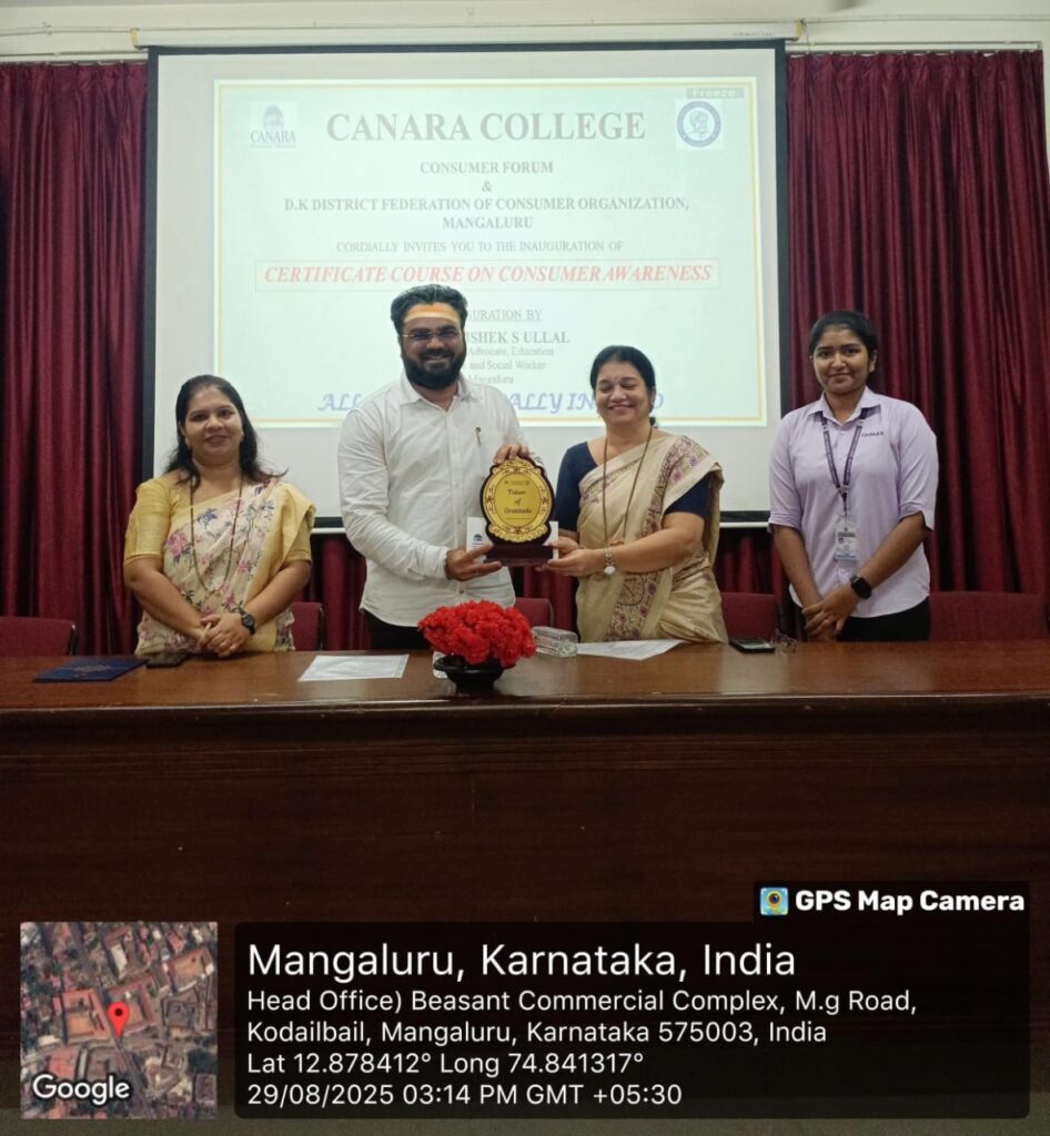 The Consumer Forum of the College organized the Inauguration of the Certificate Course on Consumer Awareness on 29th August 2025. The program was graced by Sri Abhishek S. Ullal, an Alumnus, Advocate, Education Activist, and Social Worker from Mangaluru, who served as the Chief Guest and Inaugurator of the event.