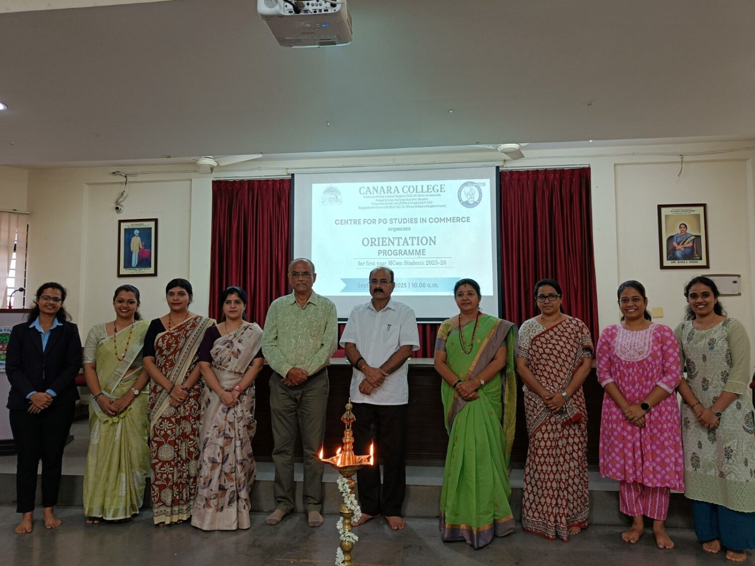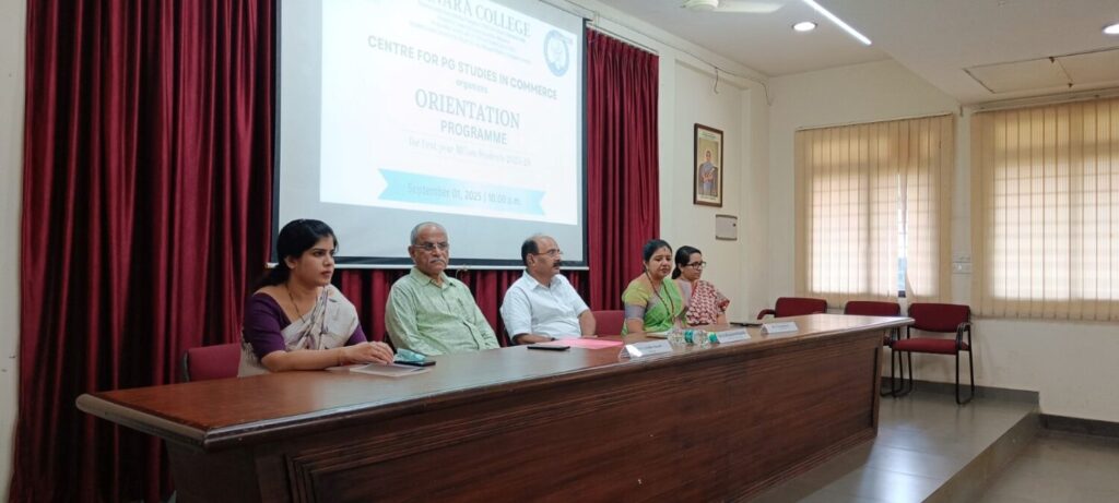 The Orientation Programme for the M.Com 2025–27 batch was held on September 01, 2025. The event began with a traditional lighting of the lamp ceremony, symbolising the start of a new academic journey and invoking blessings for knowledge and growth. Mrs. Sneha Pai, Faculty of the M.Com Department, served as the Master of the Ceremony and guided the programme with grace and clarity. Mrs. Shwetha Pai, Faculty of the M.Com Department, delivered the welcome address, setting a warm and inclusive tone for the day.