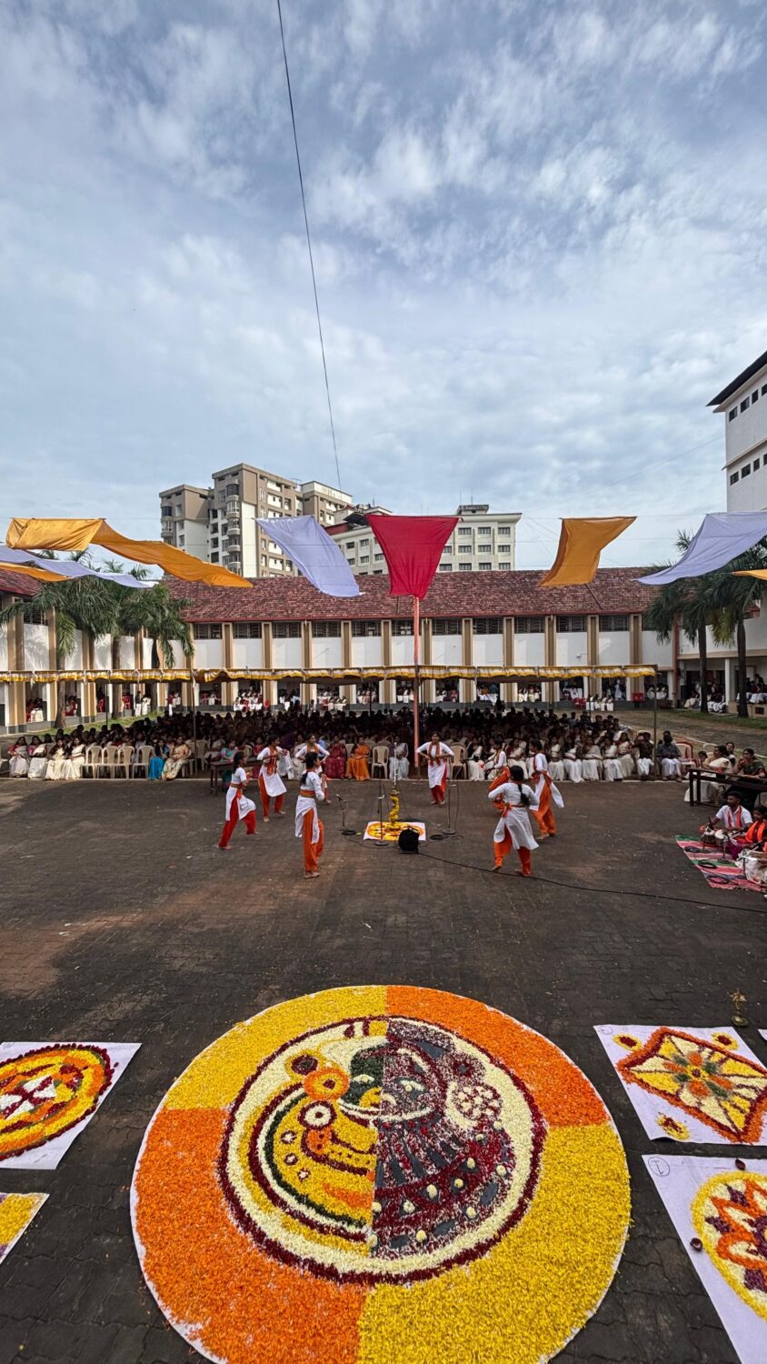 During the inaugural programme, a few students performed Thiruvathira Kali, a traditional dance form of Kerala, adding grace and cultural charm to the celebration. The celebration featured a variety of vibrant cultural activities. The Pookalam competition saw enthusiastic participation with students designing beautiful and floral patterns that captured the spirit of Onam. Students also presented graceful dance performances, adding colour and liveliness to the programme.