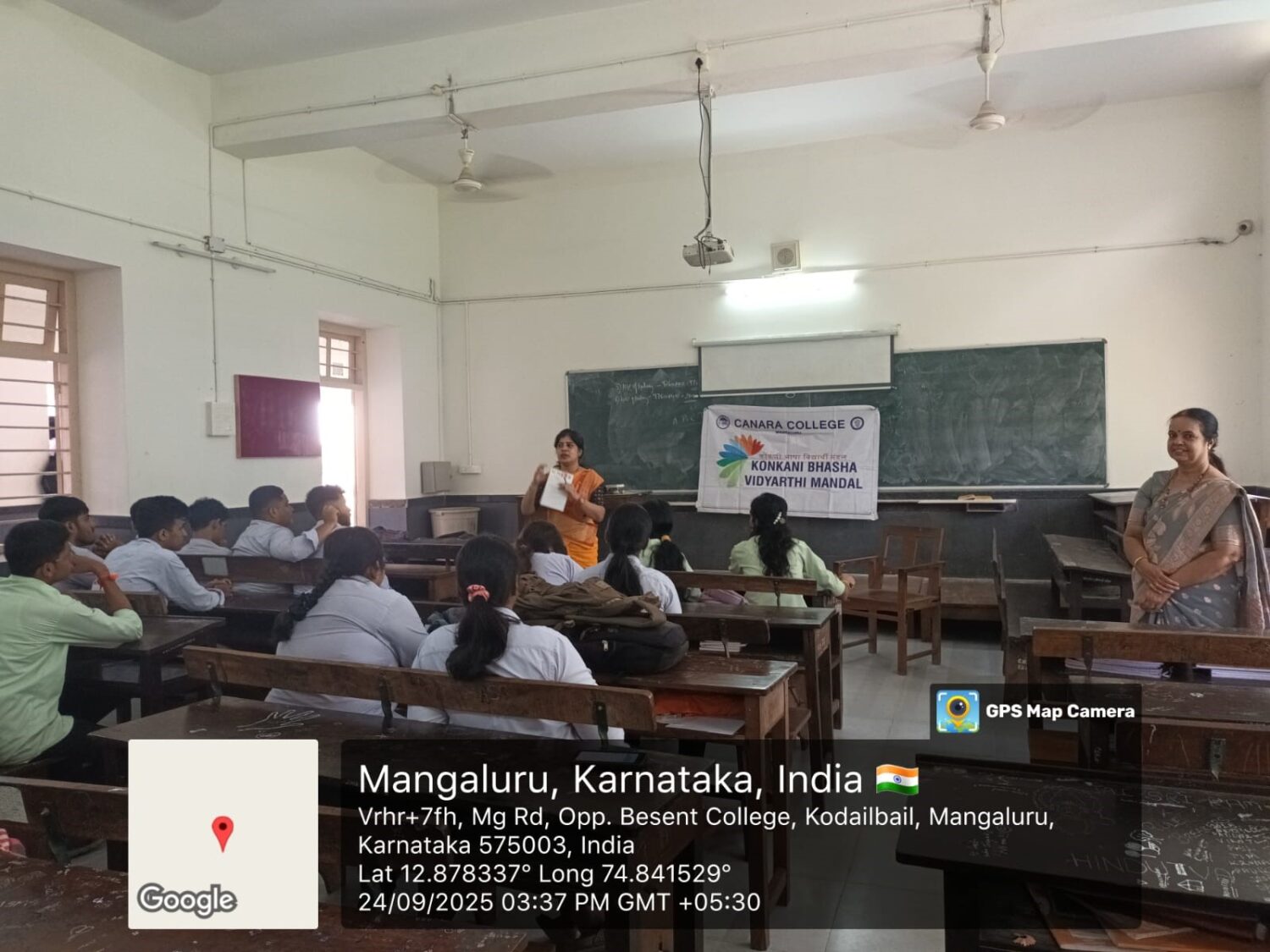 Konkani Bhasha Vidyarthi Mandal (KBVM) organised a session on “Proverbs In Konkani “ on September 24, 2025, in Lecture Hall No. 06 at 3:30 P.M..The Resource Person of the session was Mrs Swathi Nayak, HOD, Centre for PG Studies in Commerce. This session aims to enhance the cultural and linguistic understanding of students by exploring the traditional wisdom preserved in the Konkani language. Proverbs are short, meaningful sayings that reflect everyday experiences, morals, and values of society. Through this session, students will learn the deeper meanings behind commonly used Konkani proverbs. An activity was conducted in order to make the students explain various proverbs so that they can make use of them in their day-to-day life. Through this activity, participants explored different Konkani proverbs and understood their relevance in contemporary situations. This session has not only enriched vocabulary and communication skills but also strengthened cultural awareness and appreciation for regional heritage. By connecting the wisdom of the past with present-day contexts, the session will encourage students to apply these learning’s in practical and creative ways. Altogether, this activity further aims at preserving and promoting Konkani culture while making learning engaging and practical for students. A total of 16 students have actively participated in the session.
