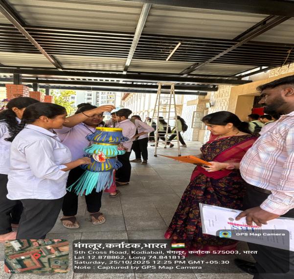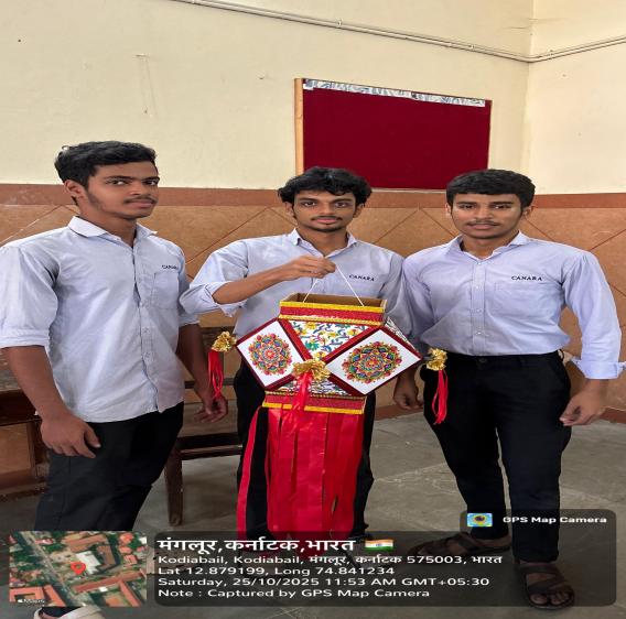 The program was well-coordinated by Mrs. Vani U.S. and Ms. Maneesha D, Conveners of the Tulu Sangha, who ensured smooth organization and active student involvement.A total of 21 students participated in this activity.The competition beautifully reflected the spirit of Deepavali and the essence of Tulunadu culture through artistic expression and festive enthusiasm.