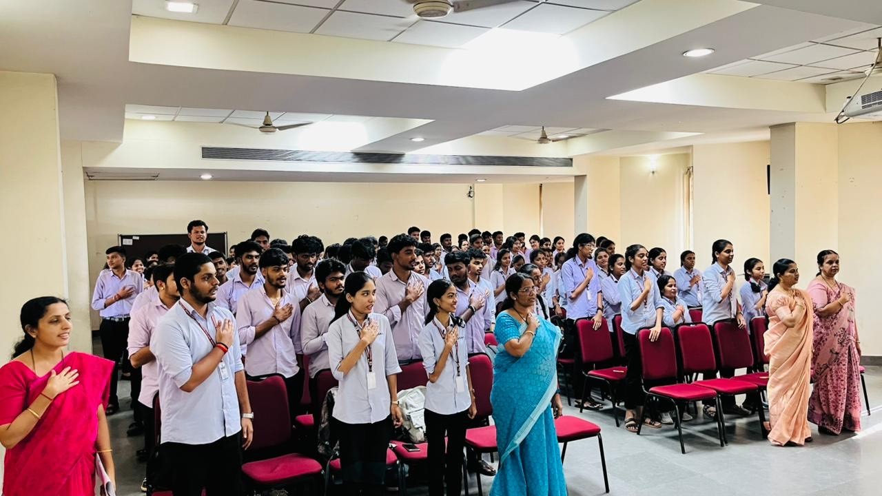 Mrs. Anasuya Bhagvath, IQAC Coordinator, welcomed the guest and the gathering. Mrs. Megha, IQAC Coordinator, extended a heartfelt gratitude to all those who contributed to the success of the programme. Ms. Prathiksha, student of I BCom B rendered the invocation. Altogether, 105 students participated in the programme, which successfully instilled a sense of unity, patriotism, and responsibility among them.