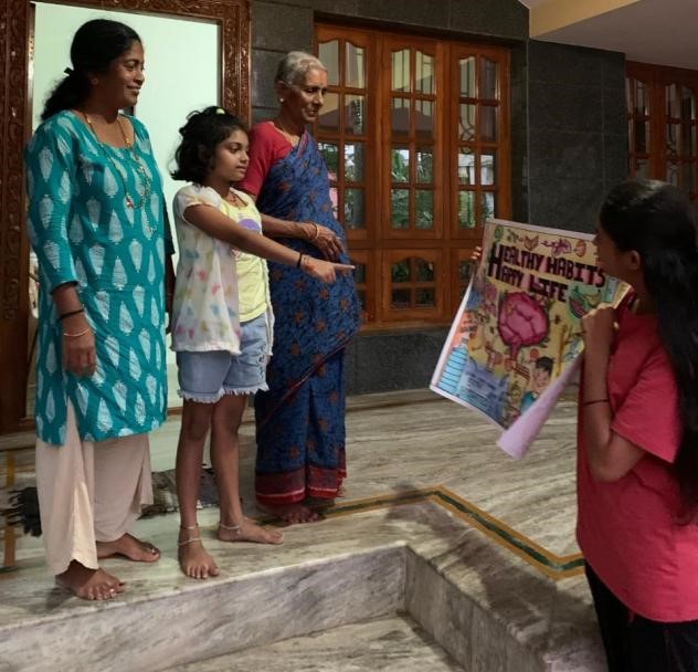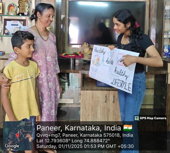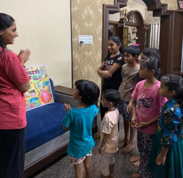 After completing their posters, students visited their neighborhood to spread awareness on health and hygiene practices. They interacted with local residents, explained the importance of adopting healthy habits, and encouraged community members to follow simple yet effective hygiene routines. Students captured photographs and also short videos of their interaction.