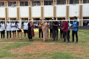 The Department of Physical Education organised an Inter-Class Women’s Throwball Tournament on October 31, 2025, in college ground for interested students. This program was inaugurated by our Principal, Dr Premalatha, Head of Science stream Dr Asha Kirana Pakkala and Physical Education Directors, Mr Avinash and Mr Karthik, coordinated among the students. The tournament aims to promote teamwork, physical fitness, and a spirit of healthy competition among students. The tournament saw active participation from students of various classes, making it a vibrant and competitive event. The matches were intense, with teams showcasing excellent coordination, strategy, and sportsmanship. All teams maintained excellent sportsmanship and discipline, contributing to the smooth conduct of the event.