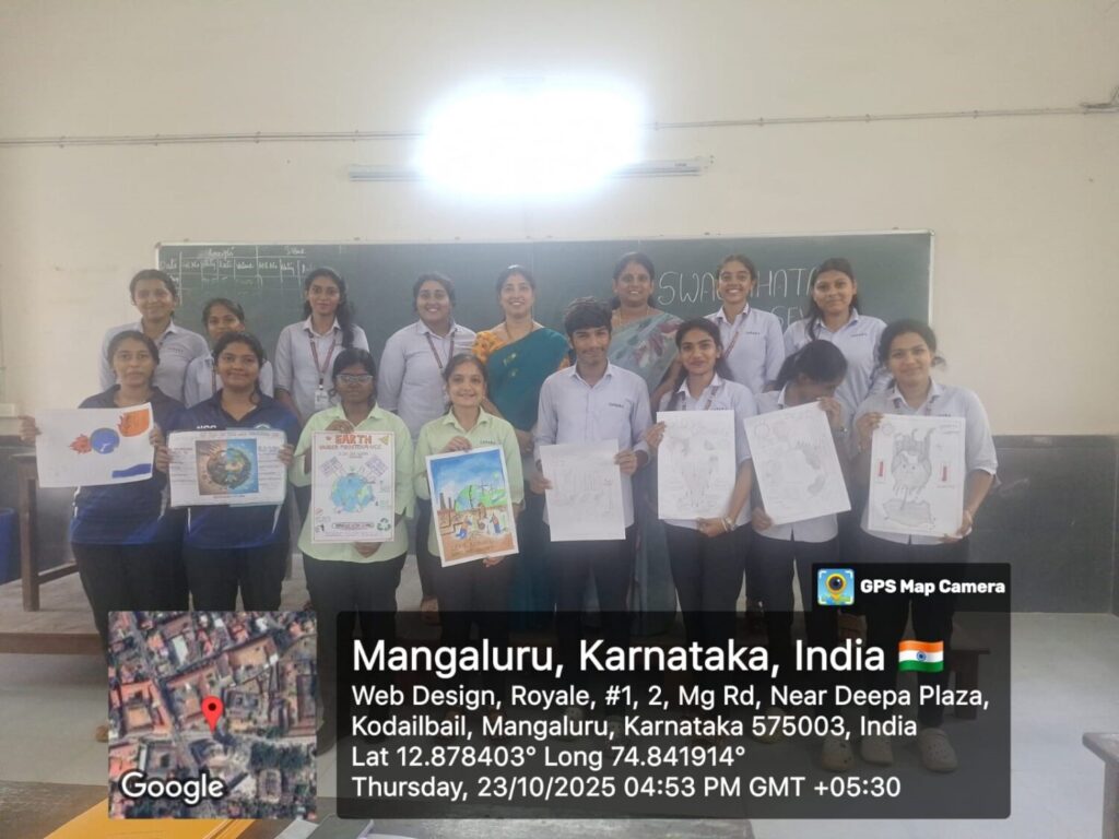The program commenced on October 23, 2025, with Poster Making and Elocution competitions. In the poster-making event, participants expressed their artistic vision on the topic “Earth Under Maintenance – Handle with Care”, showcasing creative and thought-provoking artwork. Simultaneously, the Elocution Competition encouraged students to articulate their ideas on “Youth’s Role for a Cleaner Tomorrow”, promoting awareness about the role of young people in building a cleaner future.