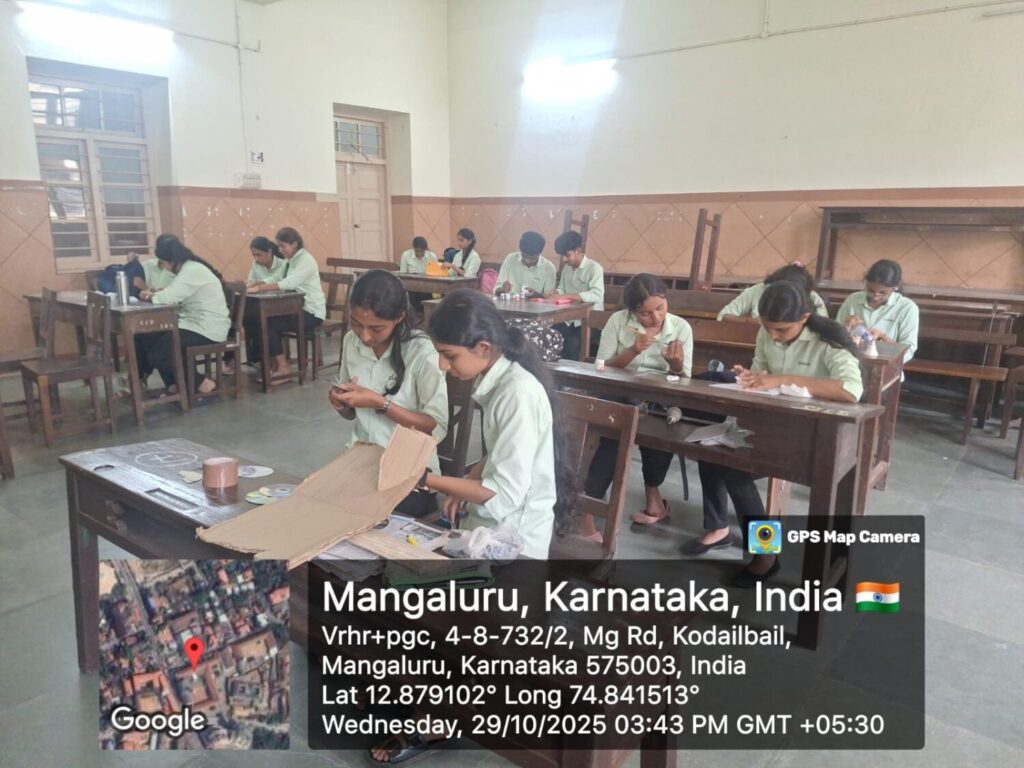 On October 27, 2025, an Awareness Session on E-Waste Management was conducted for NSS volunteers. The session was conducted by Mrs. Pushpanjali S. Assistant Professor in Zoology, Canara College. She educated the volunteers about the hazards of improper disposal of electronic waste and the importance of recycling and responsible e-waste handling. Following the session, volunteers actively collected e-waste materials from students’ homes. The collected items were safely deposited in the designated E-Waste Collection Bin placed within the campus as part of the Swachhata campaign. This initiative not only promoted environmental awareness but also encouraged students to adopt eco-friendly disposal practices.