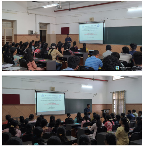 The Centre for PG Studies in Computer Applications, Canara College, organized an insightful session on “Career Launchpad – First Step to Professional Development” on November 17, 2025. Mr. Sharan Karanth, Assistant Professor, Centre for PG studies in Computer Application(MCA) was the resource person.