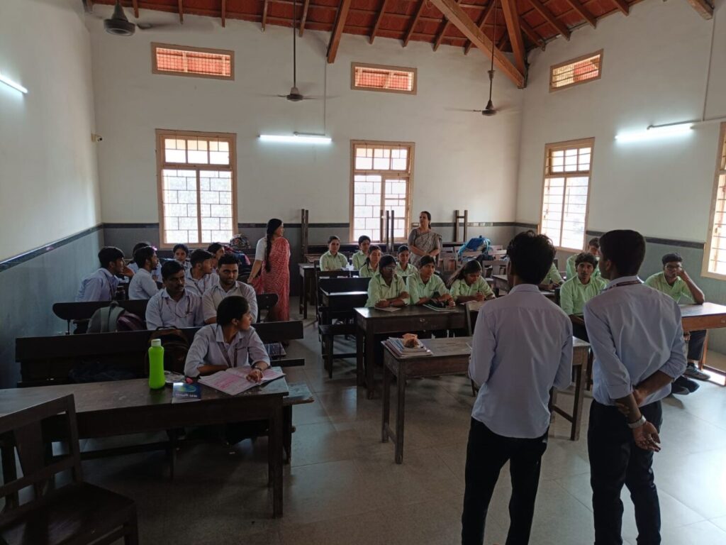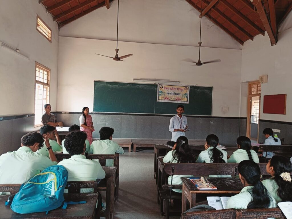The Department of Hindi organized an interactive poetry-reading activity based on the poem book “Meri Duniya.” The author of the poetry book is Mrs. Sujatha G. Nayak. A total of 26 students participated enthusiastically in the session, which was conducted in Lecture Hall 28 at 10.30 a.m. Some students were assigned a poem from the book and were asked to read it aloud and explain what the poet aims to convey through the verses. The activity created an engaging literary environment where students explored poetic expressions, emotions, and deeper meanings behind the lines. The session encouraged open discussion, expressive reading, and thoughtful interpretation, making it a meaningful learning experience for all participants.