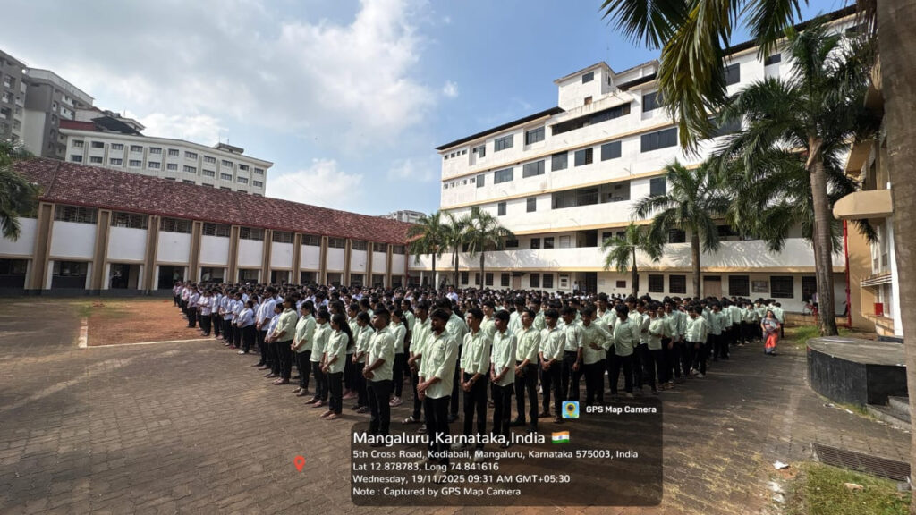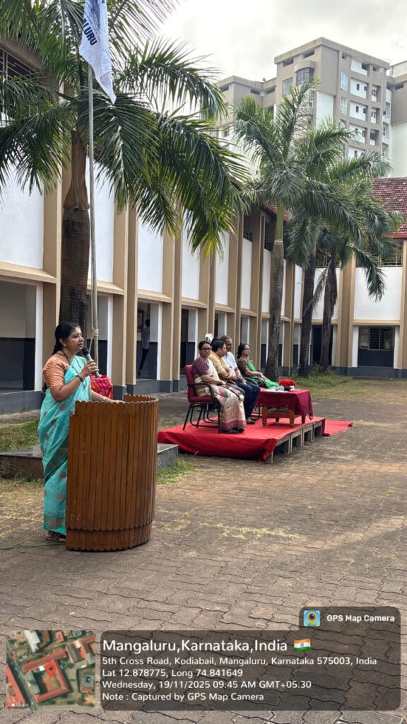 The Departments of English, Kannada, Hindi, Sanskrit, and Political Science jointly organised the Founders’ Day Celebration on November 19, 2025, at 9:15 a.m. in the College Quadrangle. The programme began with a prayer and unfurling of the college flag, followed by a welcome address by Ms Vanisha C. and a song dedicated to the Founder by the college choir.