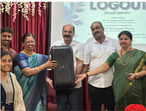 “LOGOUT – Signing Off with Gratitude and Best Wishes” – A farewell celebration for the MCA students of the first batch (2023–24) was joyfully organized by their juniors on November 24, 2025 in the college premises. The Chief Guest of the programme was CA M. Jagannath Kamath, Correspondent of our college, and the event was graced by the esteemed presence of Sri K. Shivananda Shenoy, Manager of the college, Dr. Premalatha V., Principal, and all the faculty members of the MCA Department, whose support and encouragement added great significance to the celebration.