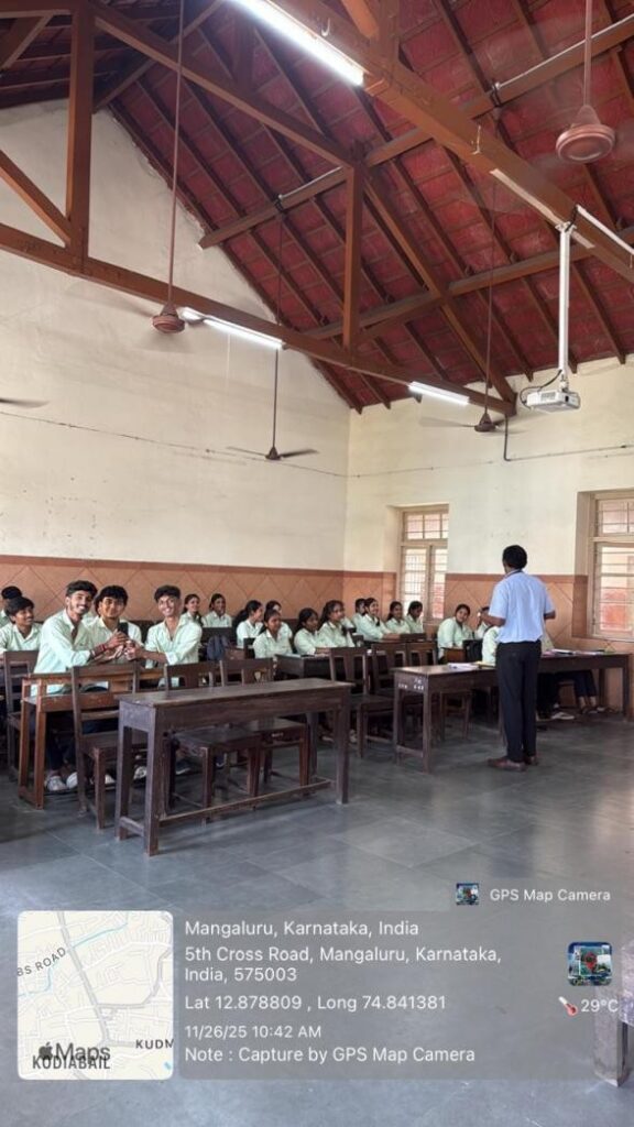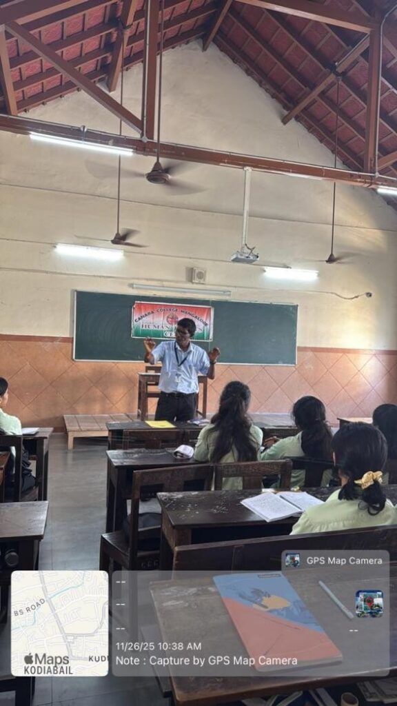 The Human Rights Cell of our college has organized a Seminar on “The Relevance of Constitutional values today” on 26th November, 2025 in Lecture Hall. The seminar featured Dr.Ganesh.Shetty.U., HOD in the Department of Political Science at Canara College, Mangalore, as the resource person delivered an enlightening lecture on the nature, importance and special attributes and the relevance of core constitutional values and he has pointed out that, the relevance of constitutional values generated cohesiveness among the people of India and strengthens the democratic fabrics of India.A total of 40 students of B.C.A(B). have participated in the seminar.
