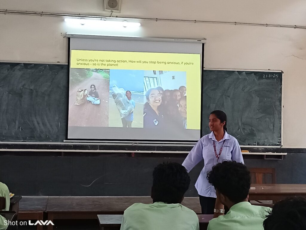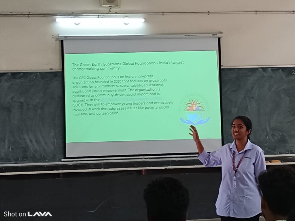 The speaker encouraged students to transform their concern into purposeful action rather than fear. She stressed the importance of initiative, collaboration, and community engagement by showcasing various national and global platforms such as Climate Cardinals, Tuesdays for Trash, Everything Starts Small, The Earth Prize Competition, and The Green Earth Guardians Global Foundation, inspiring students to participate in meaningful environmental initiatives. She concluded the session with the strong message: “Anxiety ends with hope, and hope begins with action.” The seminar witnessed active participation from 45 students. It successfully ignited discussions on environmental responsibility and empowered the audience to look beyond the problem and contribute toward practical, solution-oriented change.