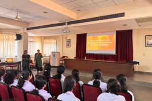 The seminar was delivered by Ms. Aisiri Aithal, a second-year BBA student and Deputy Director of Communications at Climate Cardinals, HQ in New York, who presented on the topic “Climate Change: The Silent Fear of Tomorrow.” She addressed the concept of climate anxiety and explained how rising environmental challenges are affecting the mental health and emotional stability of individuals, especially the youth. She highlighted that while climate change is widely discussed, strong emphasis and action on solutions are still lacking.