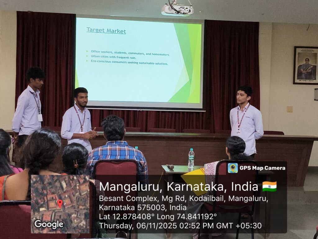A total of 30 students participated in the event, forming 10 teams. Each team was allowed to pitch its business idea before a panel of judges. The participants presented their ideas by explaining the uniqueness of the product or service, target market, revenue model, and growth potential. The judges actively interacted with the participants, raising questions and offering constructive feedback, which helped students refine their ideas and gain real-world entrepreneurial insights.The event was evaluated by an esteemed panel of judges, Mr. Sandesh Shenoy, Entrepreneur and Mrs. Jayashree Shetty, an Assistant Professor, Department of Commerce & Management, who assessed the teams based on innovation, feasibility, presentation skills, and overall business potential.