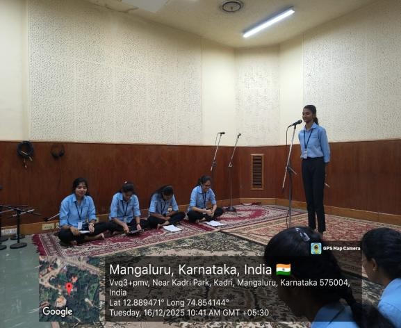 The students of the Centre for Postgraduate Studies in Commerce presented an English Yuvavani program on All India Radio, Mangalore, on December 16, 2025, on the topic “Taxes and the Economy.” The recorded program was broadcast on January 03, 2025, at 8:00 p.m.