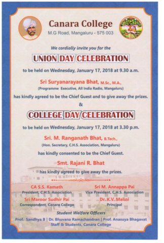 College Day celebration will be held on January 17, 2018.