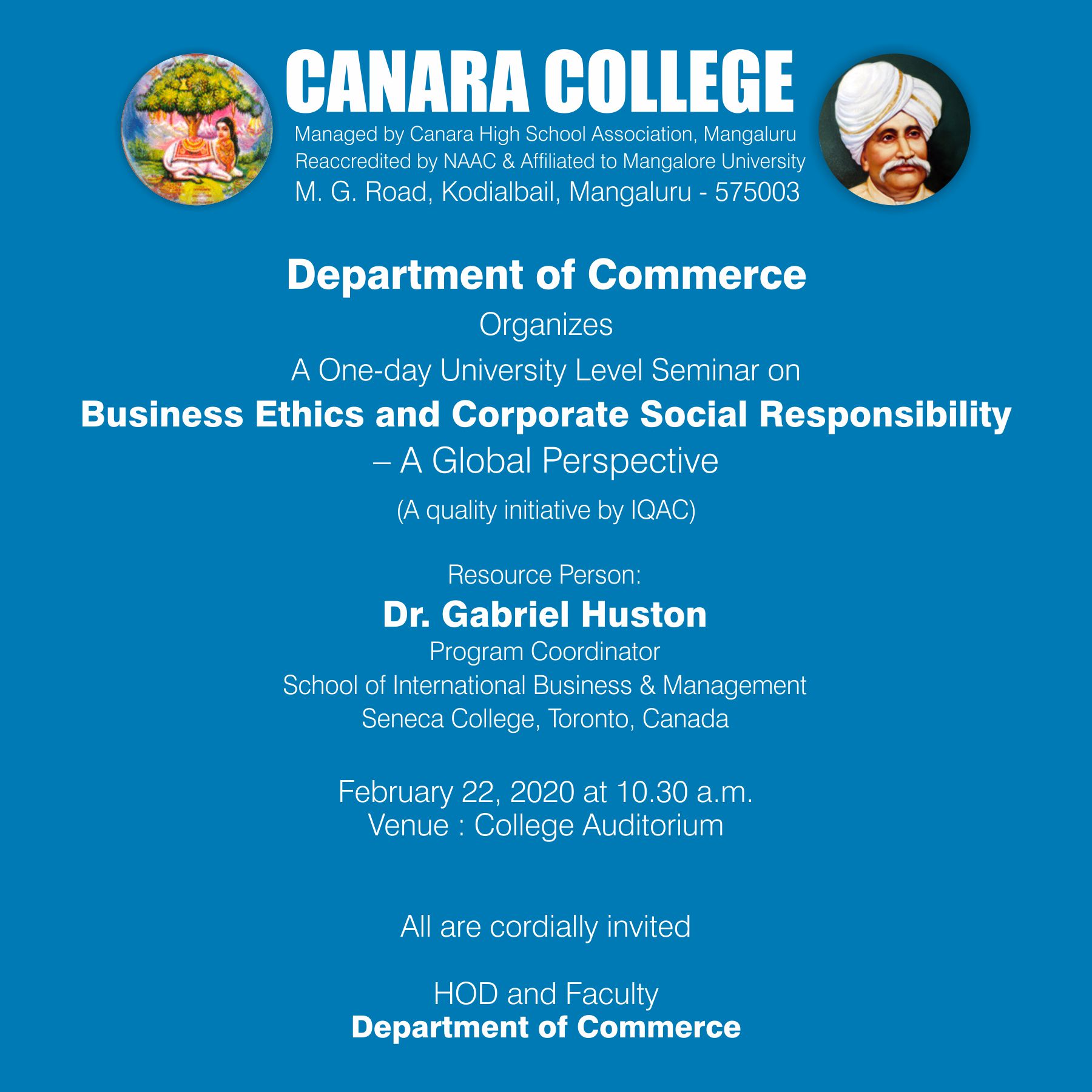 One Day University Level Seminar on ‘Business Ethics & Corporate Social Responsibility’ – A Global Perspective